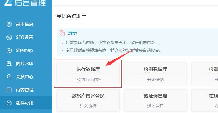 如果沒(méi)有不懂用工具,可以下載sql壓縮包,解壓將里面的sql文件,在【易優(yōu)系統(tǒng)助手】插件里執(zhí)行。